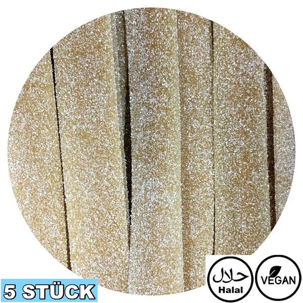 Zucker; Glukosesirup; Stärke; Feuchthaltemittel: Sorbitsirup; WEIZENMEHL; Säuerungsmittel: Citronensäure, Äpfelsäure; Emulgator: Mono- und Diglyceride von Speisefettsäuren; Überzugsmittel: Carnaubawachs; Aroma; Karamellsirup.