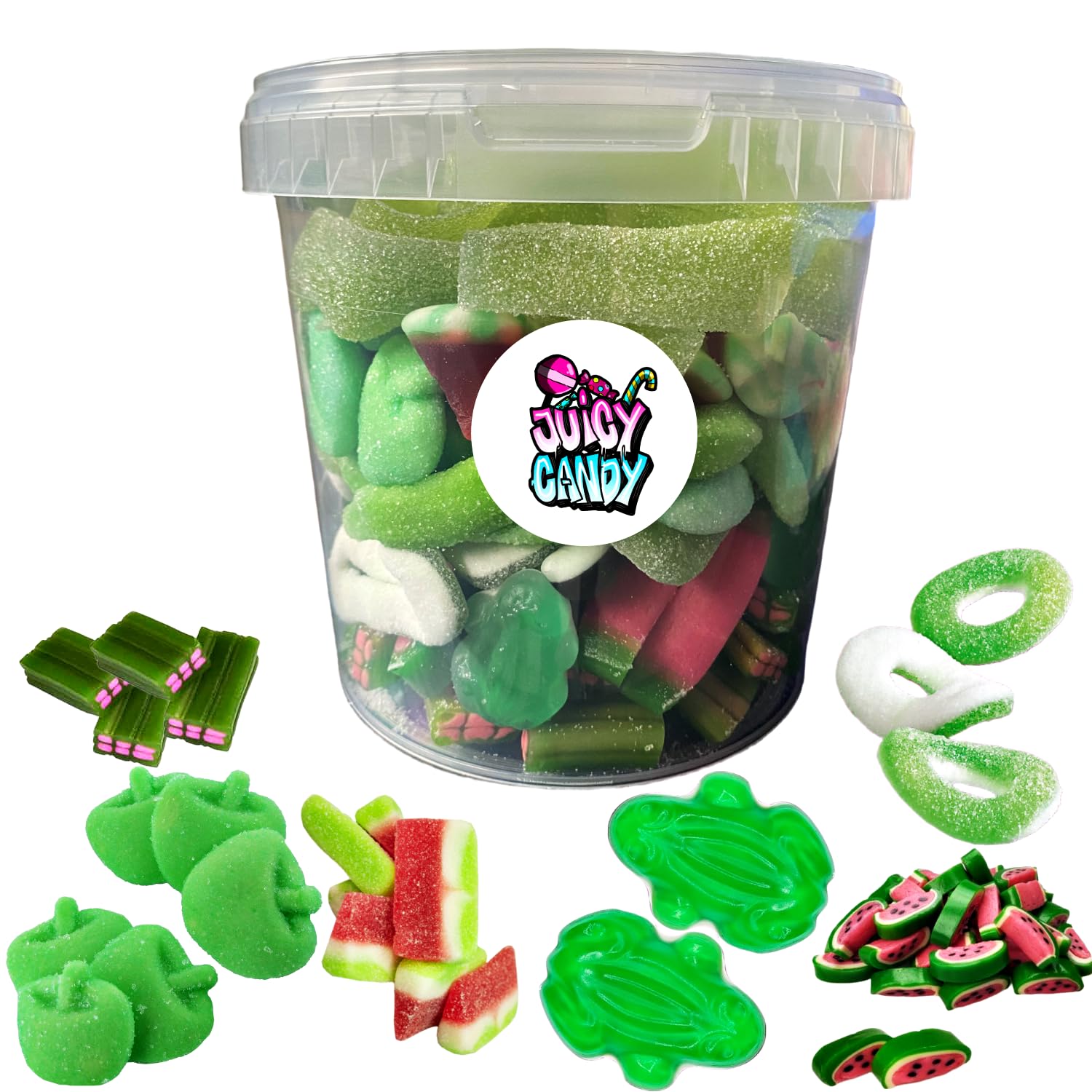 Grüne Süßigkeiten Mix Box 500 g – Eimer mit Fruchtgummis aus aller Welt 🍏