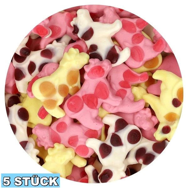 Glukosesirup, Zucker, Magermilchpulver ( 6% ) , Gelatine, Säuerungsmittel ( Citronensäure, Milchsäure, Geliermittel ( Pectin ) , Aromen, Farbstoffe ( E104, E120, E124, E150c, E151, E171 ) , pflanzliches Öl, Trennmittel ( Bienenwachs, Carnaubawachs )