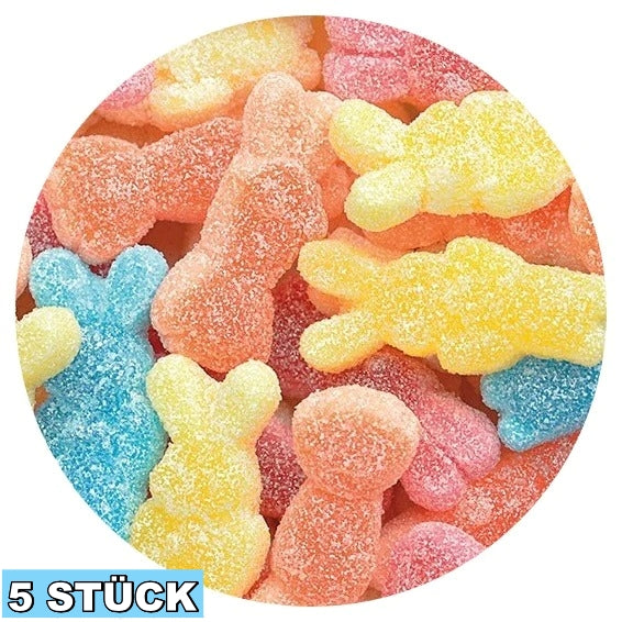 Glukose-Fruktose-Sirup, Zucker, Gelatine, Lebensmittelsäuren (Äpfelsäure, Citronensäure), Säureregulator (Natriummalate), Aromen, Farbstoffe (Brillantblau FCF, Paprikaextrakt, Lutein), Lebensmittelfarbstoffe (Rettichkonzentrat, Apfel, schwarze Johannisbeere)